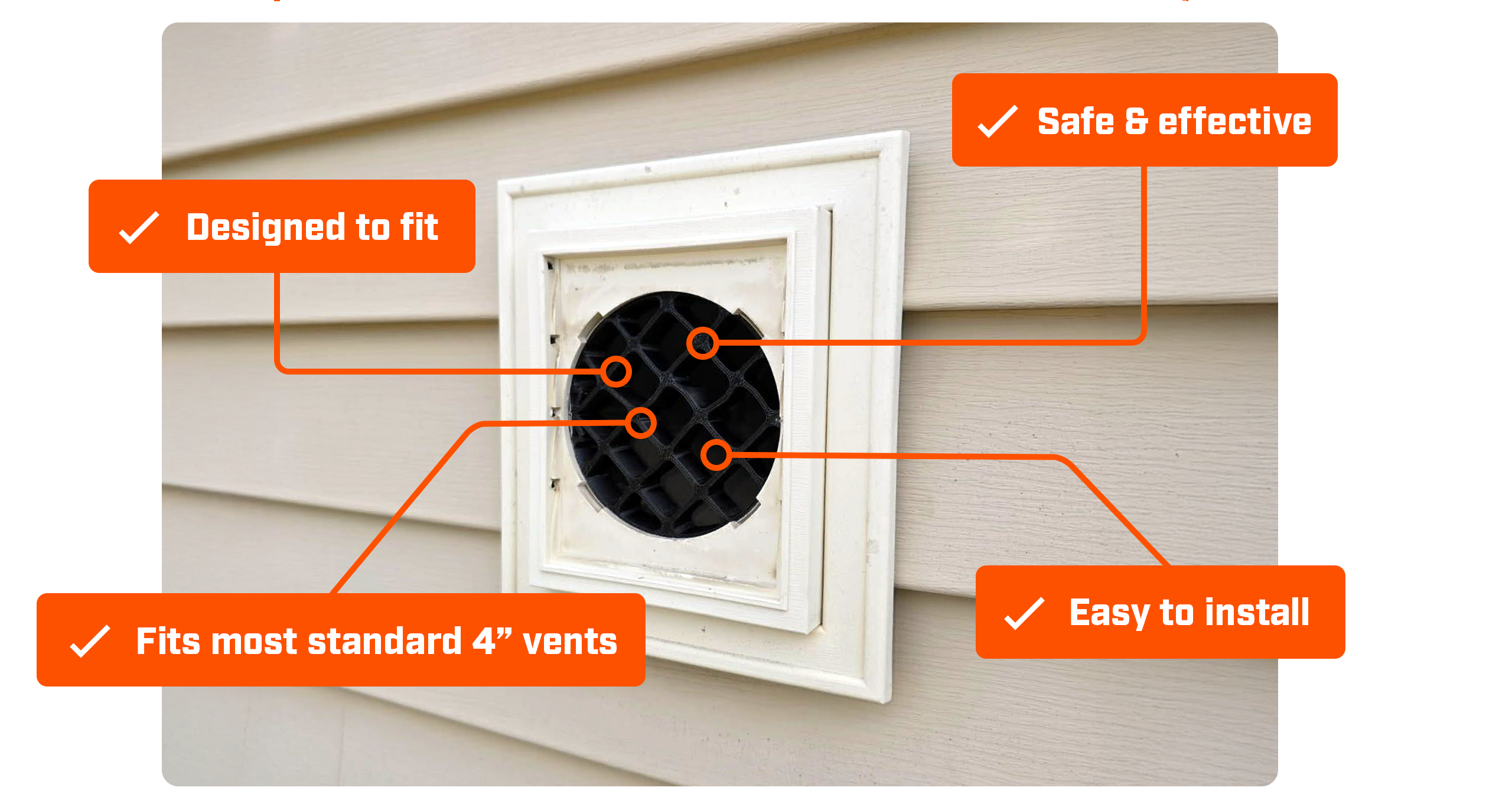 A vent guard that keeps birds and animals out—without poking new holes in your siding.